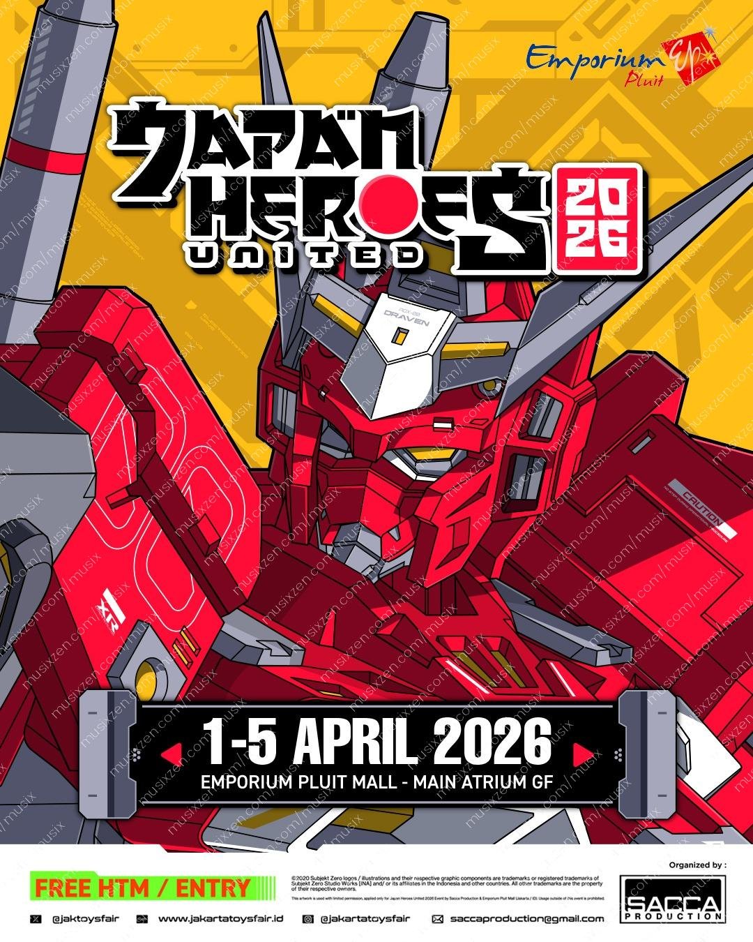 SACCA Production in collaboration with EMPORIUM PLUIT MALL, will held our annual Tokusatsu n' Anime hobby event: *"JAPAN HEROES UNITED 2026"* 📍EMPORIUM PLUIT MALL - Main Atrium GF 📅 1 - 5 April 2025 ⏰️ 10.00 - 22.00 WIB Gimmicks: - Guest Cosplayer Meet & Greet - Tokusatsu & Anime Community Showcasing - JHU Coswalk Competition - JHU Coswalk Kids Competition - Top Idol & Anisong - Senpa Sentai Exclusove Tokusong by Zetto - Tokusatsu Cosplay Cabaret Team - DJ Anime Dance Party - Cosproject Random Dance Play - Multitoys Booth - BNS Hype Blindbox Booth - Ichiban Kuuji Booth - 30 Marketplace Booths - Gachapon ... and many more! FREE ENTRY for this event!